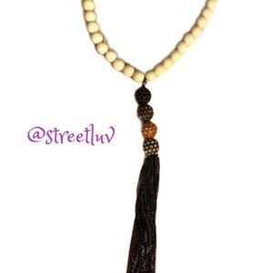 stella & dot ~ long white beaded necklace ~ soiree balls and tassel