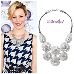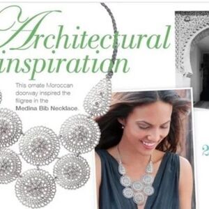 stella & dot ~ medina bib statement necklace ~ silver filigree & crystal
