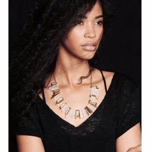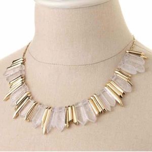 Eye catching combination of semi-precious clear crackled quartz and shiny gold fragments are hand-strung onto a delicate chain.