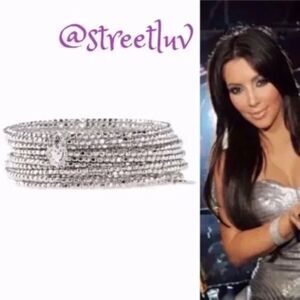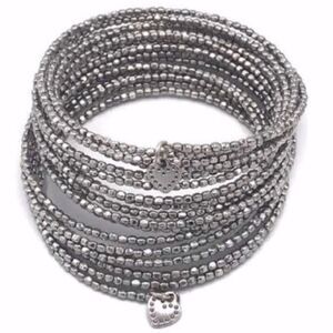 A sparkling coil of nuggets with silver plating gives the look of stacked bangles.