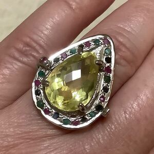 sterling SILVER 929 CITRINE/EMERALD/RUBY/BLUE SAPPHIRE WOMAN RING SIZE US 7.25