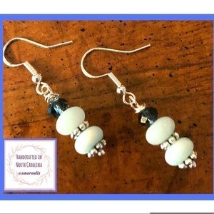 New! Handmade Sterling Silver Earrings made in North Carolina! Inspired by Tags: Tiffany Pandora David Yurman Anthropology J Crew Lagos Kendra Scott - one-of-a-kind creations by the artist! Baroque pearls, Austrian crystals, Russian & matte Amazonite, cats eye & more are incorporated in the designs. Natural materials have inclusions- 14k GF or pewter-❤️. 🌟 custom card & boxed- 🌟Sterling Silver Ear Wire & Green Amazonite w Blue Austrian Crystal