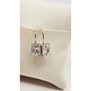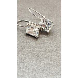 sterling silver MARKED ATI 925 China Clear Colorless Rectangular Accent Dangle. Pre-owned earrings, cleaning recommended, might have signs of wear. L6d