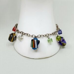 sterling silver Murano glass & crystal bead charm bracelet - GM51
