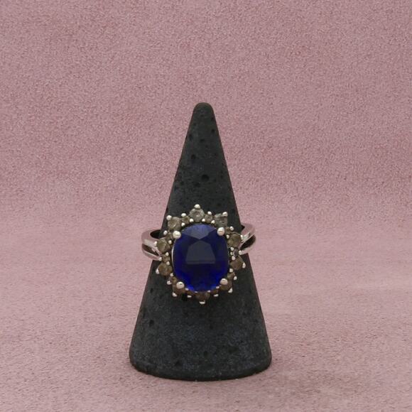 sterling silver blue sapphire with white sapphire halo ring size 7