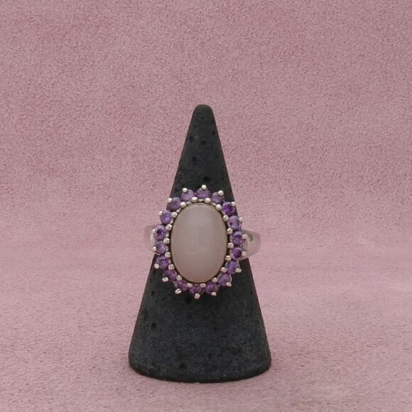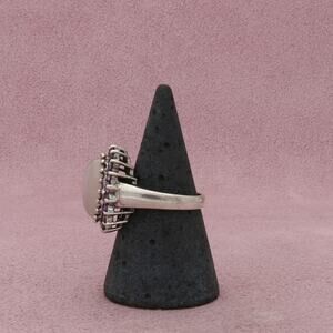 sterling silver purple jade cabochon & amethyst halo ring size 8