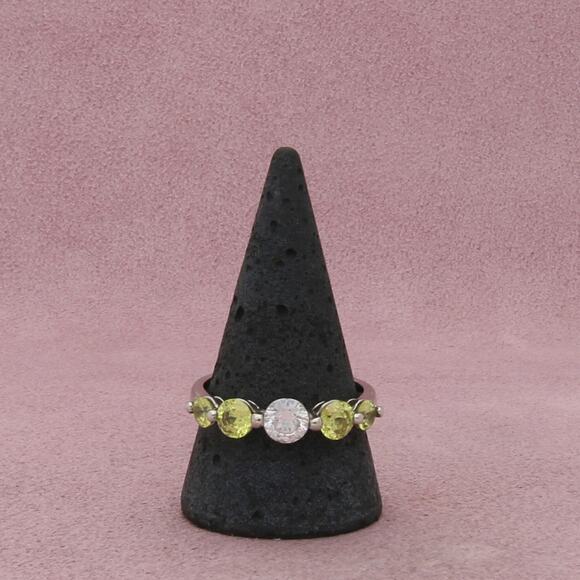 sterling silver round-cut yellow & clear cz ring size 11.5