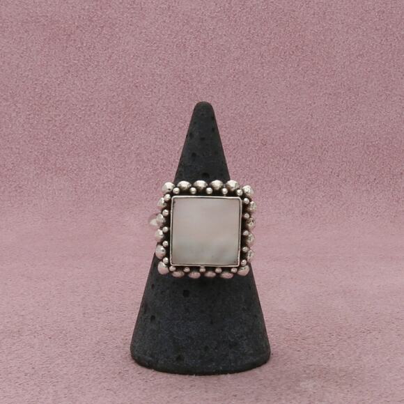 sterling silver vintage beaded mother of pearl square ring size 8.5