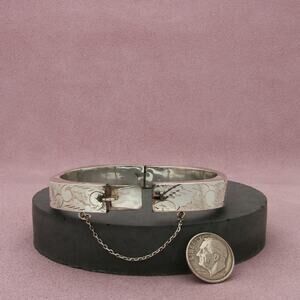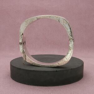 sterling silver vintage etched squared bangle bracelet size 6.75in