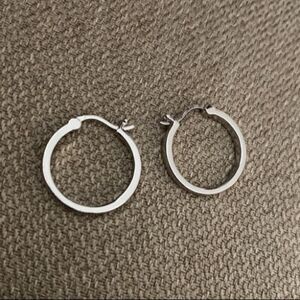 Beautiful small sterling silver posts white gold plated hoops. These are lightweight for easy everyday wear.