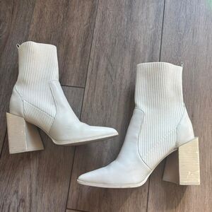 steve madden cream leather sock boot pointed toe block heel size 7.5