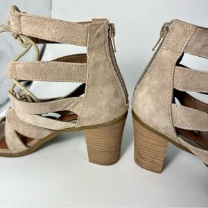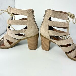 steve madden dyanna taupe gladiator chunky heel lace up sandals size 7.5