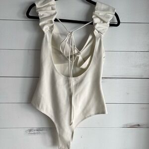 Made of stretchy, ponte fabric for all your dance moves. Bubble sleeve detail with tacks. Low-cut back with ties for a sexy, feminine touch.