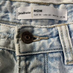 Elevate your denim game with these stylish mom jeans from Stradivarius. The light blue distressed denim and high rise waist give these jeans a trendy, casual look that's perfect for any occasion. Made with high-quality denim fabric, these jeans are designed to last and provide both style and comfort.