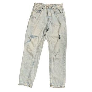 stradivarius ASOS High Rise Waist Light Blue Distressed Mom Jeans Denim 2 Xs