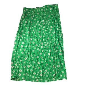 stradivarius Womens Halter Dress Slit Ruched Green Daisy Print Size 12 NWT