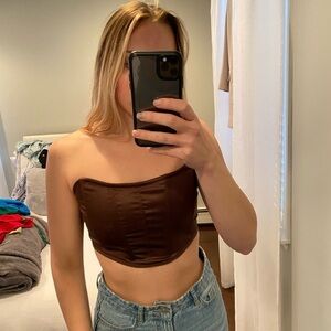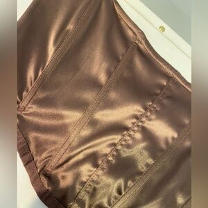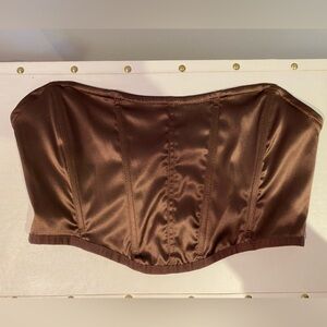 Garage brown satin like cropped corset top Strapless Zipper in back Mesh inside Size small