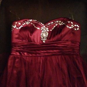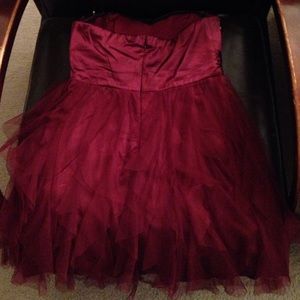 ONLY WORN ONCE! burgundy dress with ruffles on the bottom, size 13