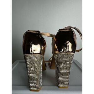 strappy Womens Solid Color Rhinestone Chunky High Heel Buckle Peep Toe Sandals size 38