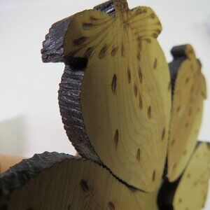 wood strawberry trivet handcrafted also could be used as a riser on a shelf 5 1/4 inch wide 1/2 inch tall