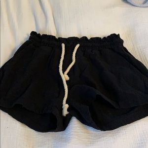 black flow shorts with comfortable waist band white strings for adjustment and two cute pockets on the back
