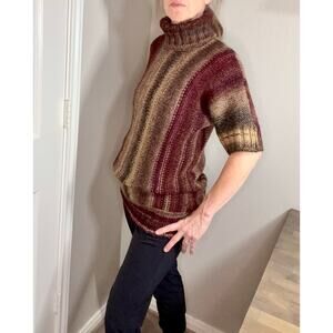 striped chunky turtleneck sweater short sleeve brown and burgundy