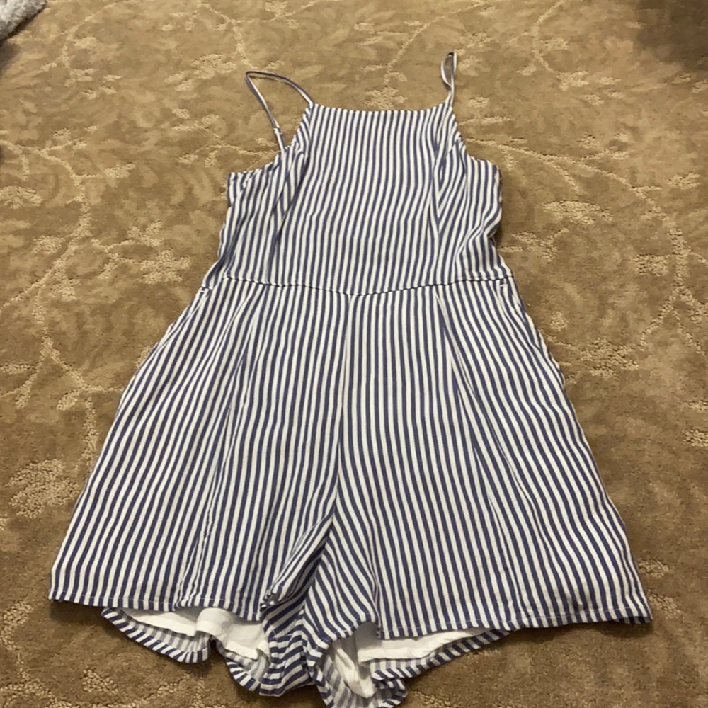 super cute romper with blue tripes