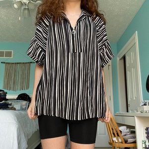 striped zip up top