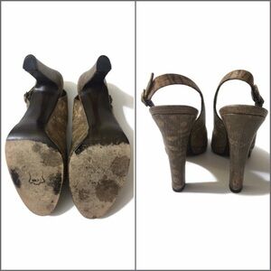 Stuart Weitzman snakeskin print peep toe slingback heels. Additional details: