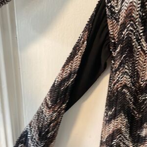 studio one new york lined earth tone chevron 3/4 sleeve dress & attached sash 12