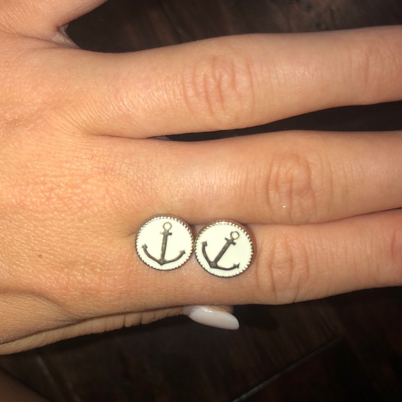 White circle studs with gold anchors