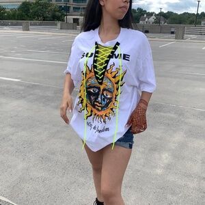 band concert top , handmade one of a kind. Perfect with high waist jeans and or shorts. Larger sizes could be worn as dress.All sizes available, Comment with question and concern.#kylielipkit #yeezy #jordan #adidas