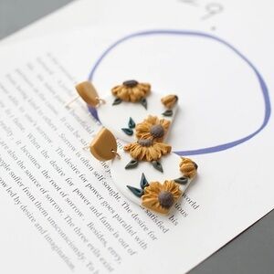 summer polymer clay sunflower earrings, boho handmade earrings, mothers day gift, boho earrings, cute earrings, statement earrings brass plated with KC gold