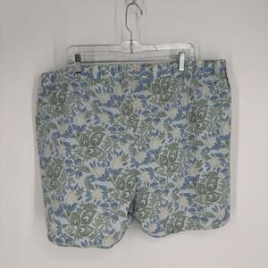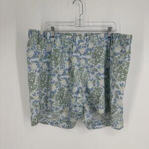 summersalt shorts 1x blue floral poplin organic cotton pull on poolside plus