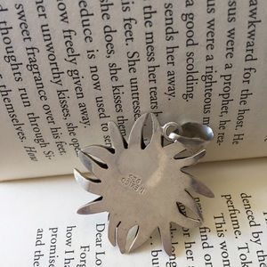 Statement sun pendant charm with a black stone. Perfect for a bohemian beach look in the summer • not sure if the stone is genuine, it has light scratch but not noticeable unless you closely inspect under certain light. Measures 1.5" • Made in Mexico •