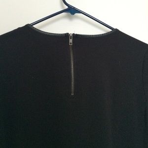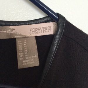 this is a black tee shirt from forever 21 with a zipper down a portion of the back and faux leather detailing!