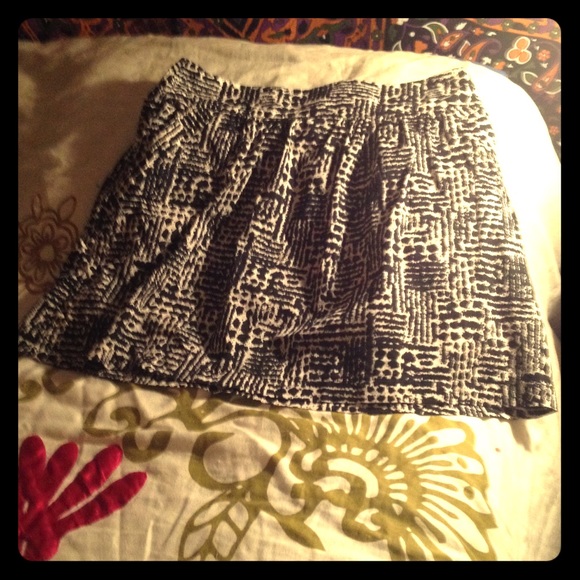 Waist measures 31" length is 17.5" from Tom of waist to hem. Super cute black an white pattern skirt with pockets! Worn once.