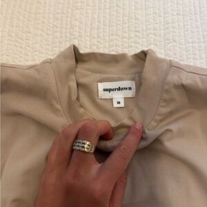 Chic beige tank top with ruched side detail. Sleeveless and stylish. Ideal for casual outings.