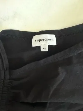 Fitted black crop top with side ruched drawstring detail. Short sleeves and a crew neckline. Stretchy fabric for a snug, flattering fit.