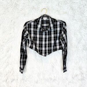 Black and white cropped plaid button down Bobbi top, size small from superdown.