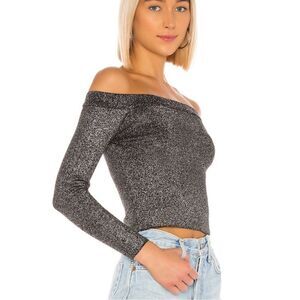 superdown Kemi black/silver glitter shimmer top. Off shoulder long sleeve. NWT. Size XS.