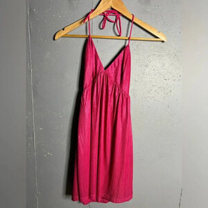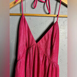 Vibrant pink mini dress. Halter neck design. Perfect for a night out.
