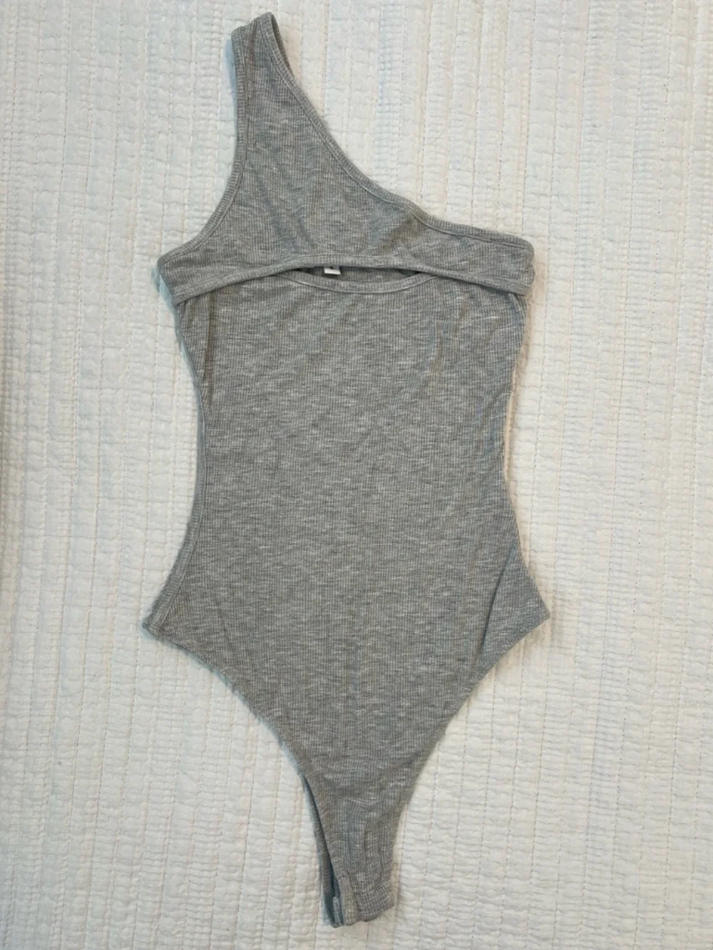 Ribbed keyhole bodysuit from Revolve Light grey Women’s size Small Snap closure
