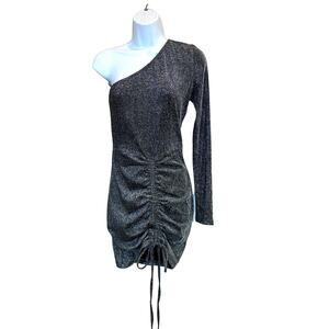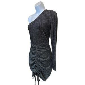 superdown Silver Sparkle One Shoulder Mini Dress MEDIUM Bodycon Club Revolve $65