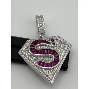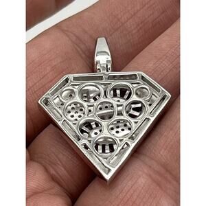 superman Sterling Silver 925 Pendant Cz Ruby Rhodium Plated