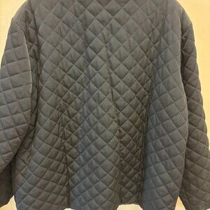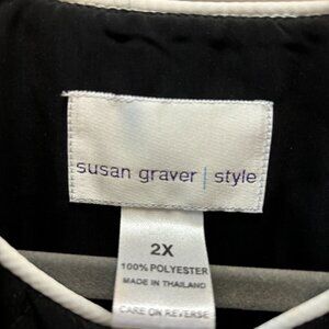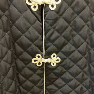 This beautiful susan graver jacket is both quilted and lined. Black with white applique closures. Excellent condition. Size 2X. Lightweight.