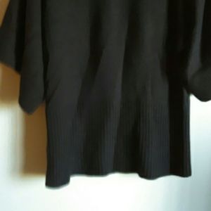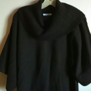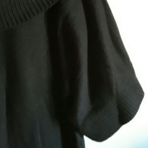 Mocha brown large drop neck. The 3/4 sleeves have cable like vertical material as well as the bottom of sweater. Hardly worn