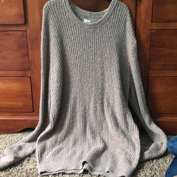 Tan sweater, soft, and comfortable.