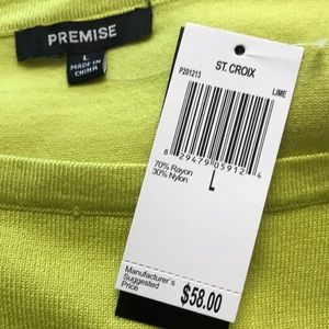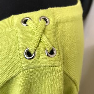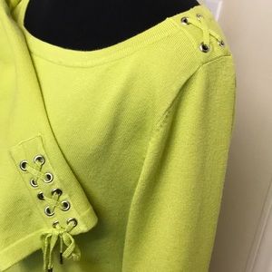 boat neck ,shoulder and sleeves has special design ! color should be lime ?! left side has a tiny tiny little dirty ! hopefully it won’t bother you !