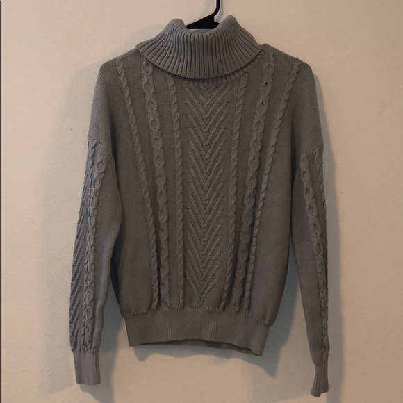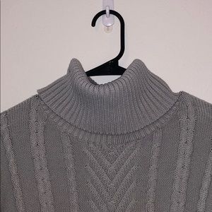 gray turtle neck sweater. worn once (pictured). no tag for size. fits like a small/medium